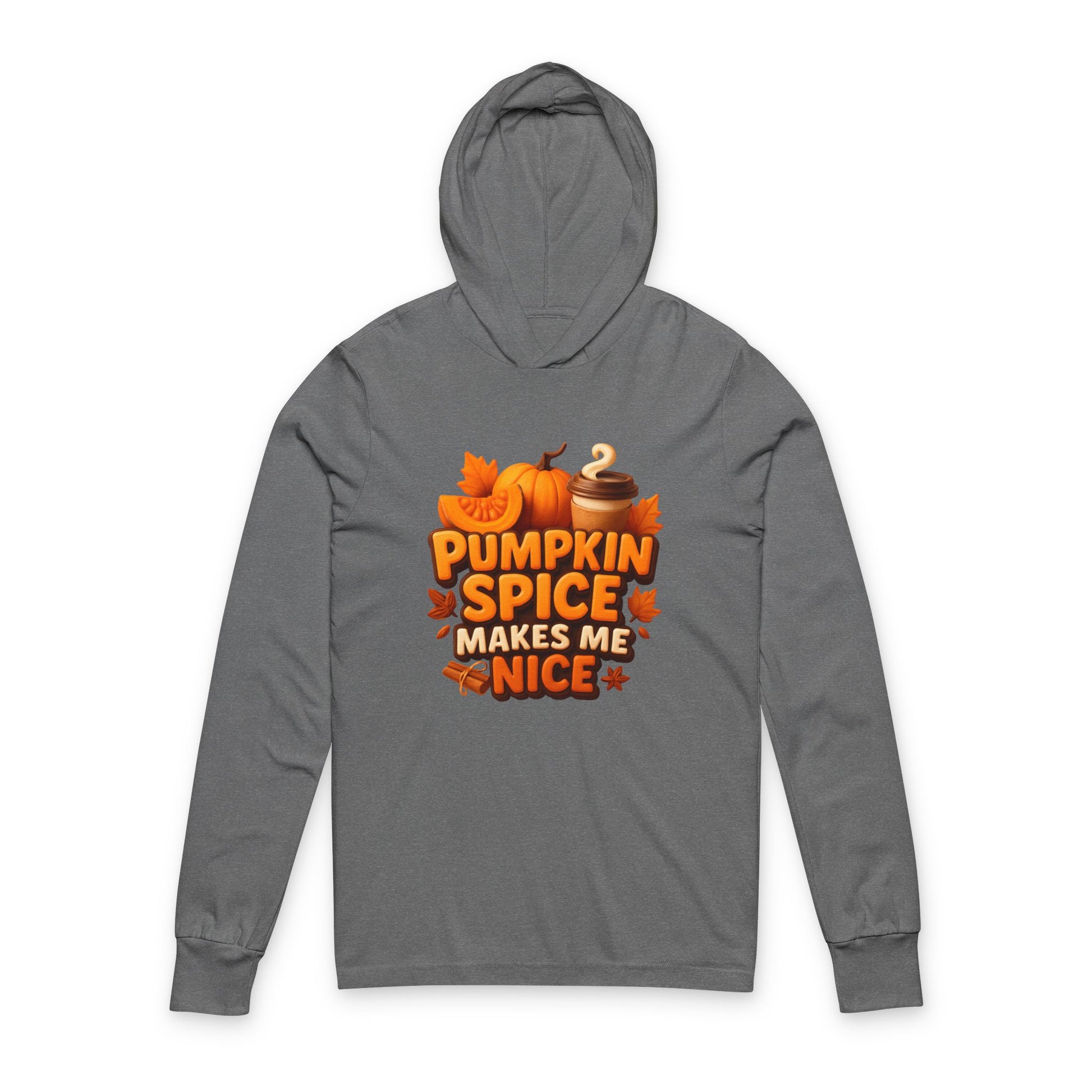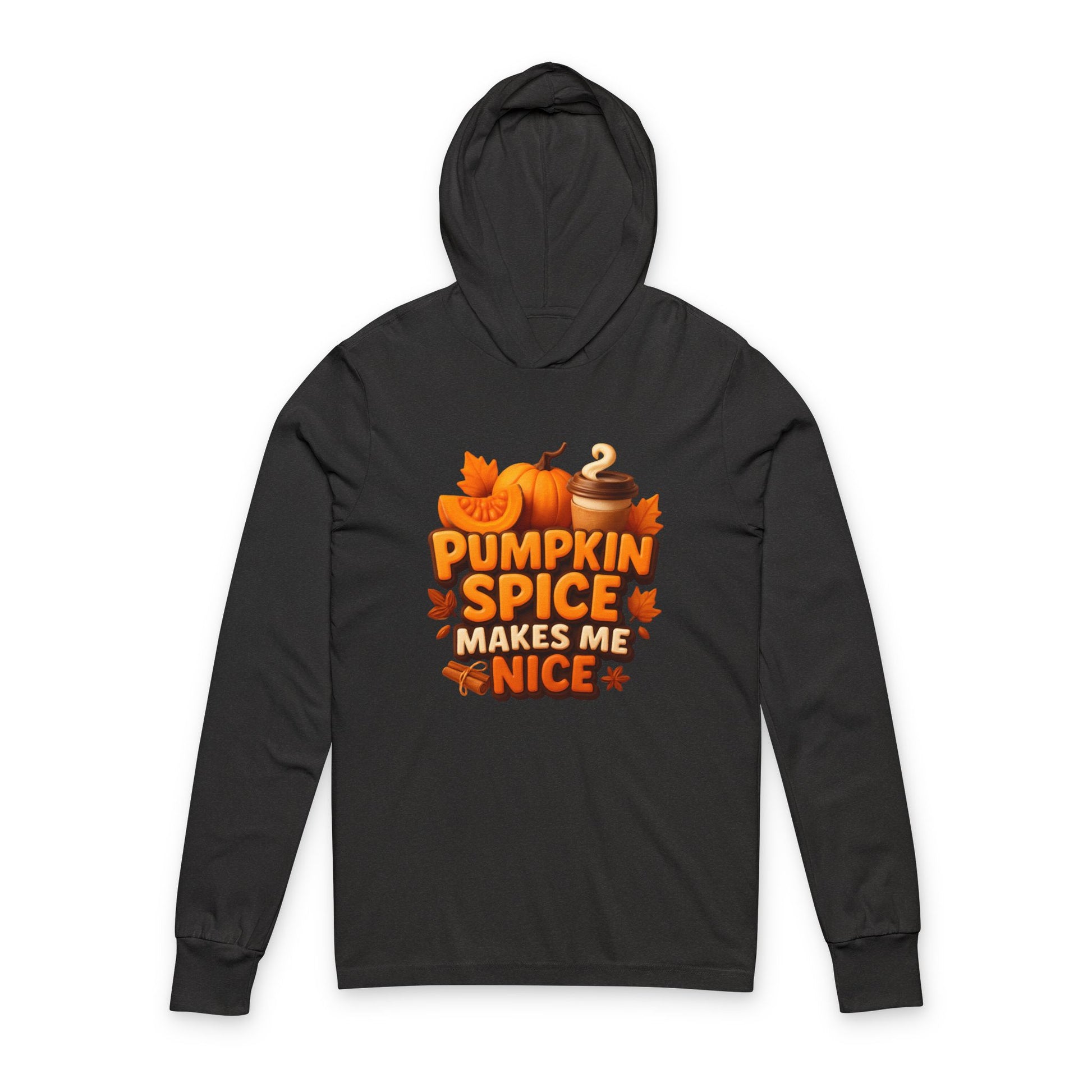 Cozy up in style this season with our “Pumpkin Spice Makes Me Nice” hoodie—the ultimate fall fashion statement for lovers of comfort and all things pumpkin!