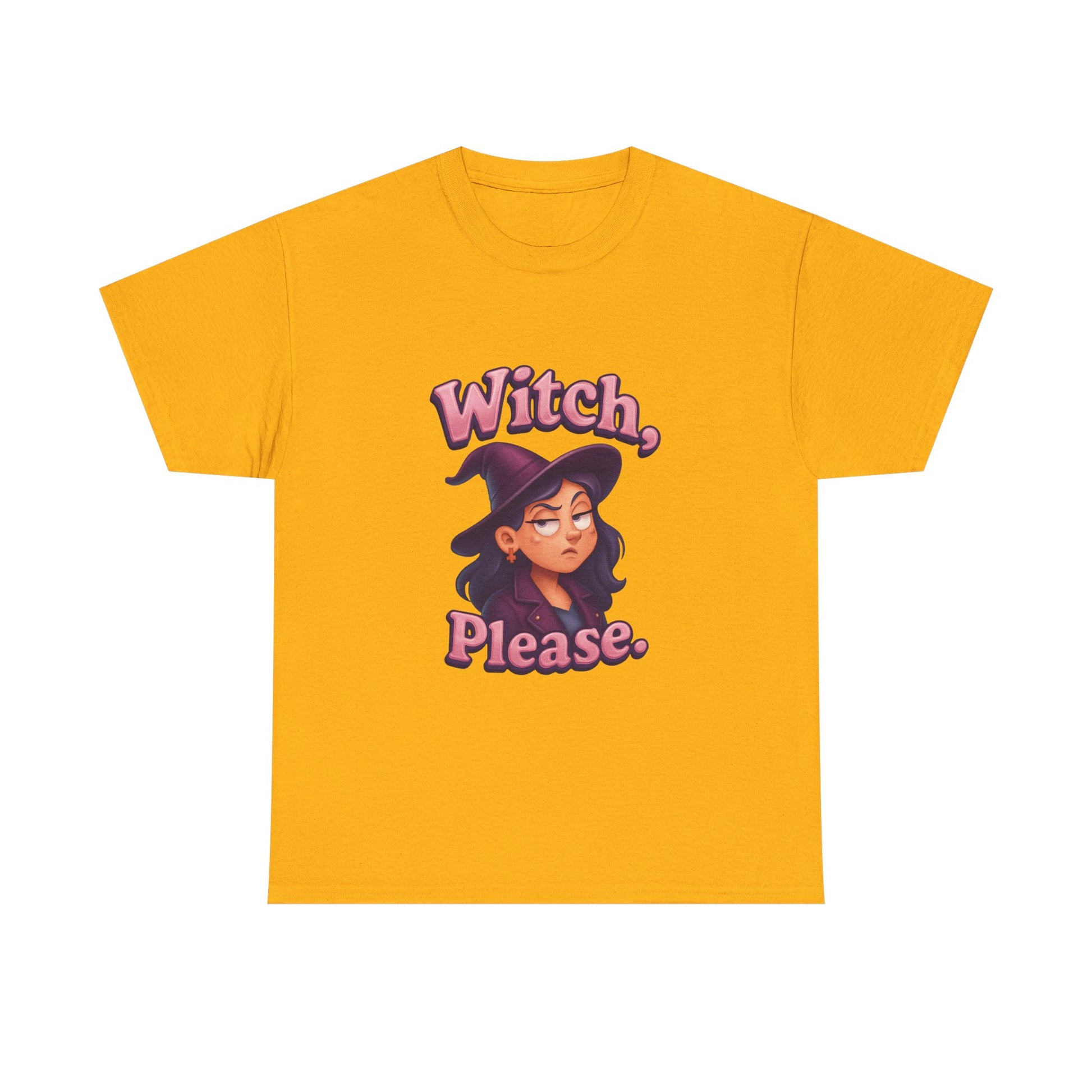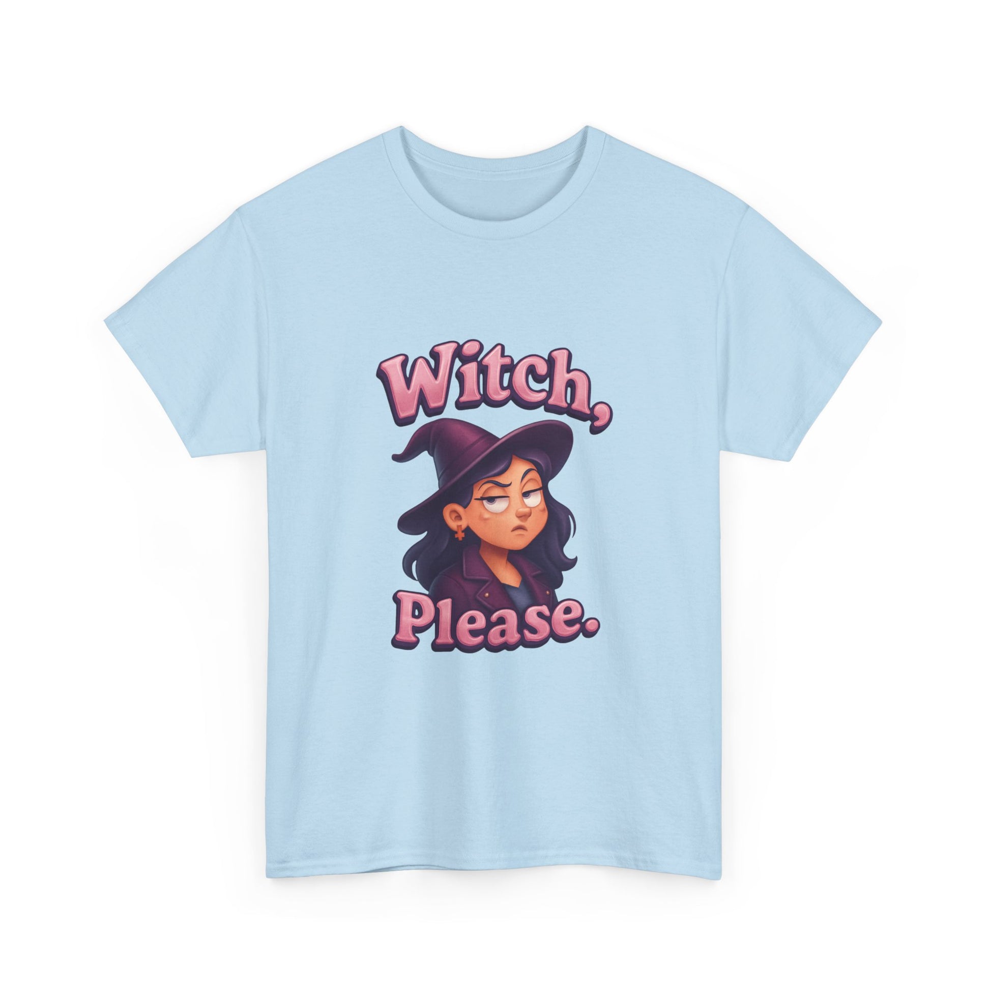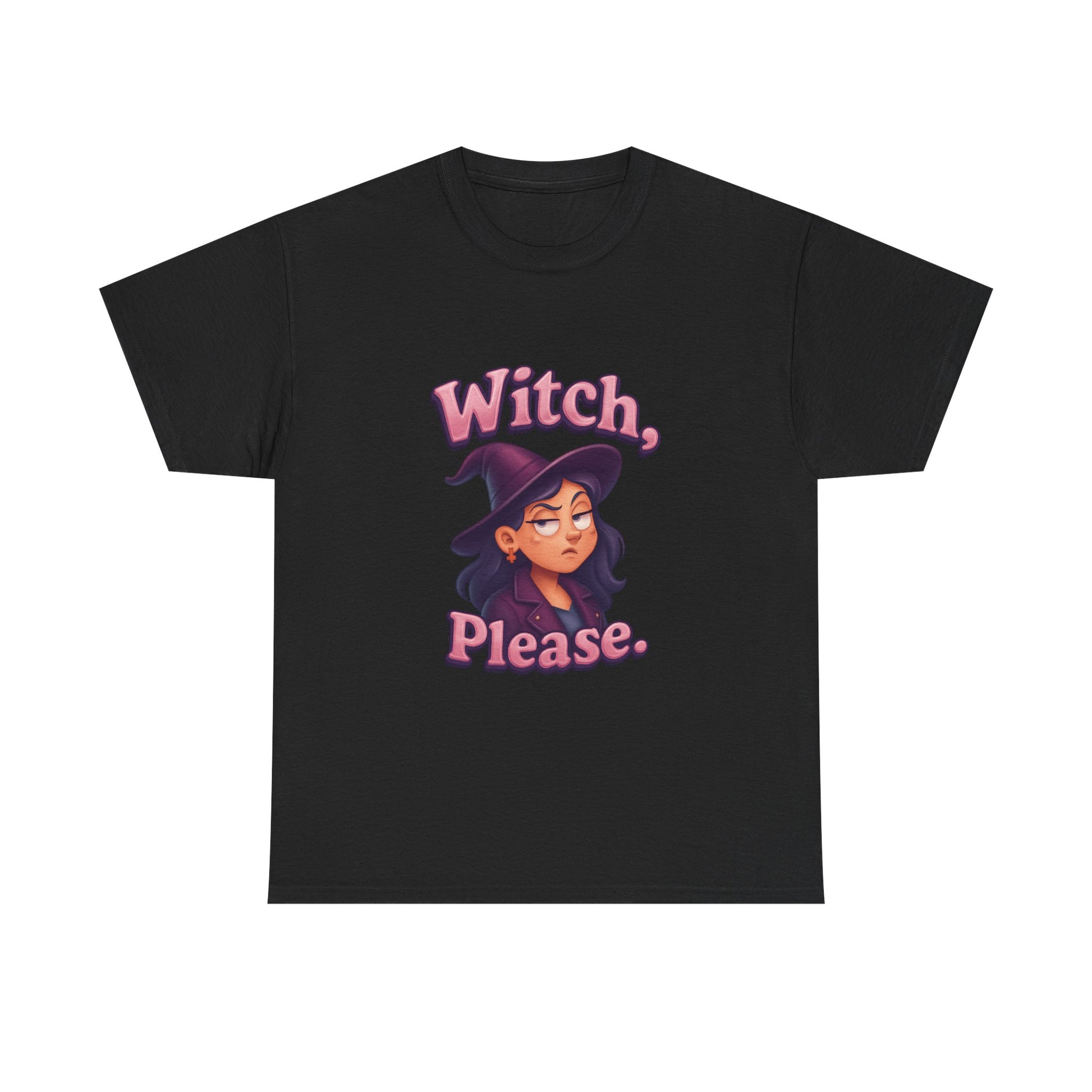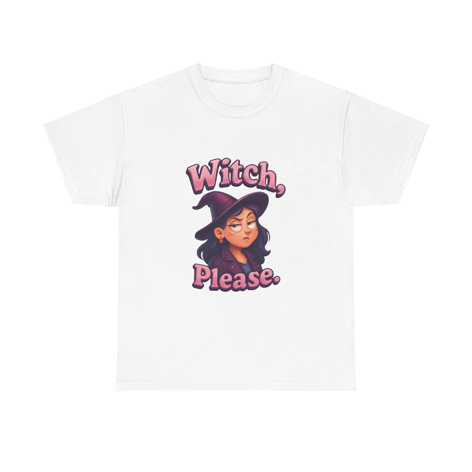 Stand out with witchy wit and next-level humor—because sometimes, a little eye roll is the best magic of all!Bring magical attitude to your wardrobe with the “Witch, please.” T-shirt! Featuring a playful design of a female witch rolling her eyes, this tee is perfect for anyone with a sly sense of humor and a love for all things spooky.