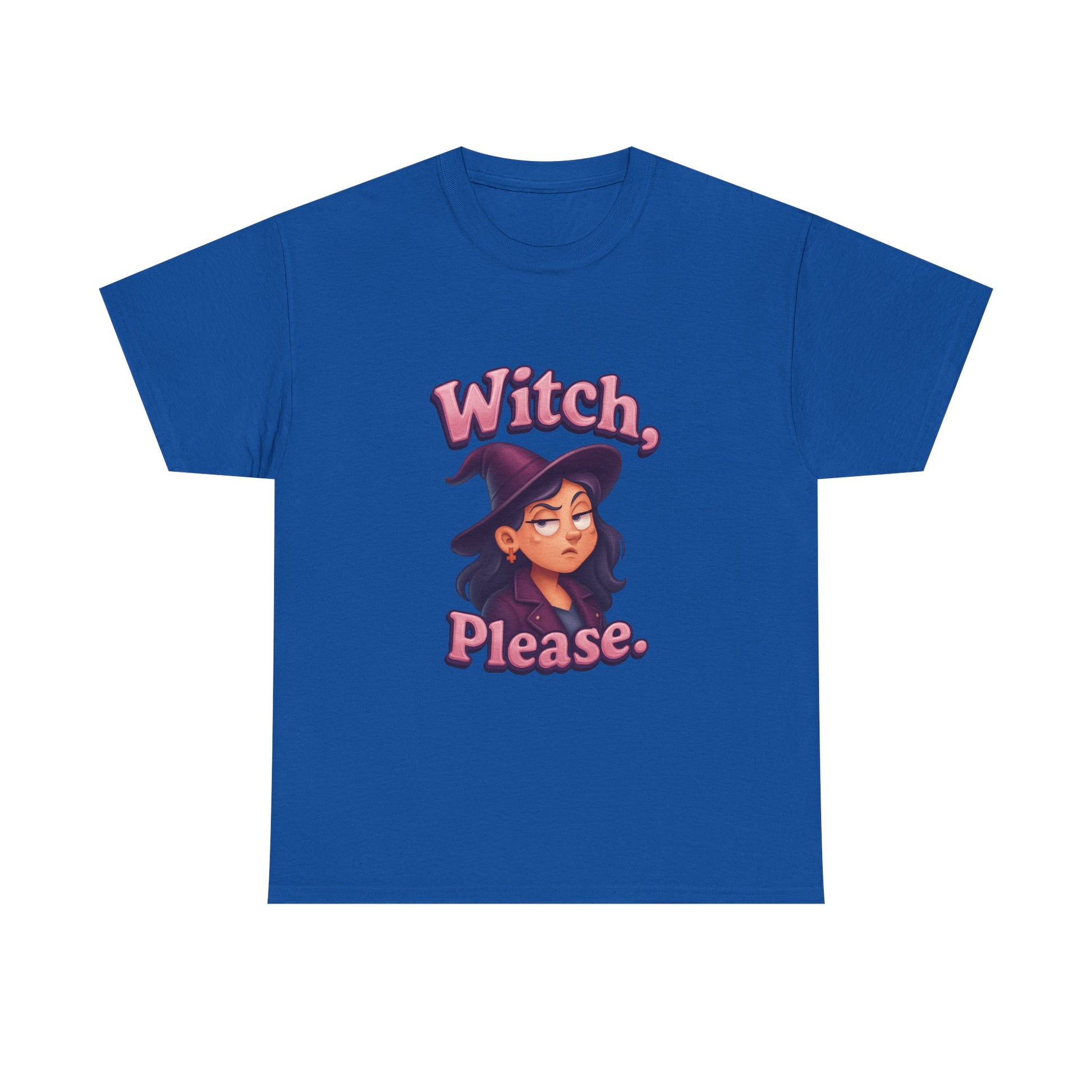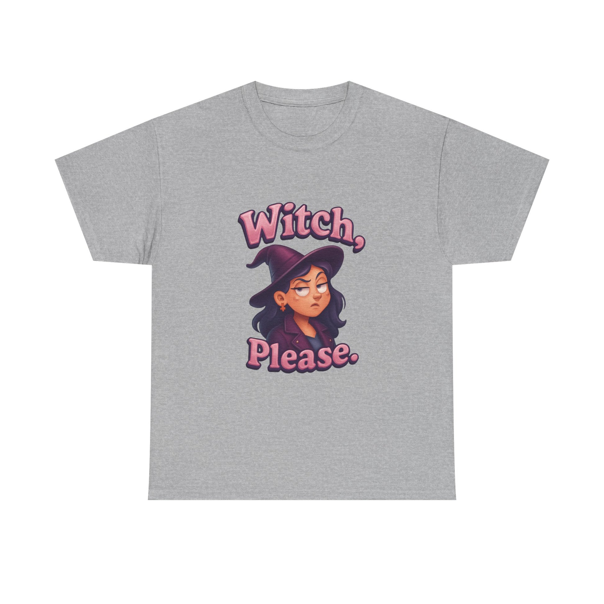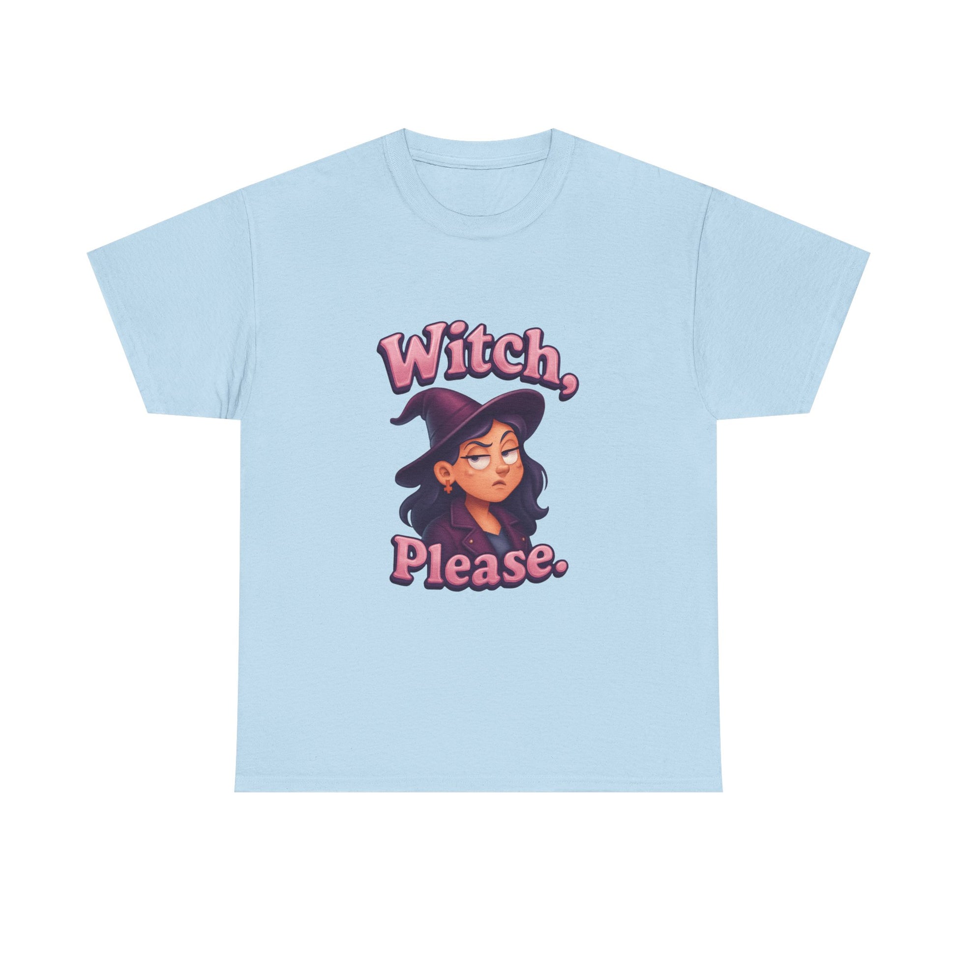 Stand out with witchy wit and next-level humor—because sometimes, a little eye roll is the best magic of all!Bring magical attitude to your wardrobe with the “Witch, please.” T-shirt! Featuring a playful design of a female witch rolling her eyes, this tee is perfect for anyone with a sly sense of humor and a love for all things spooky.