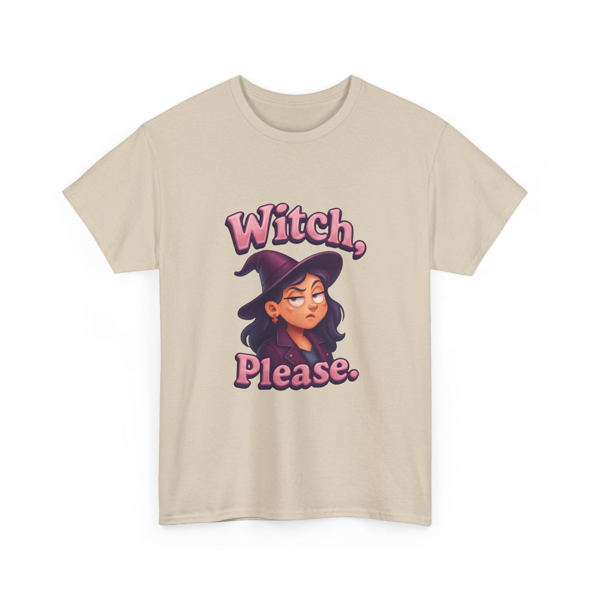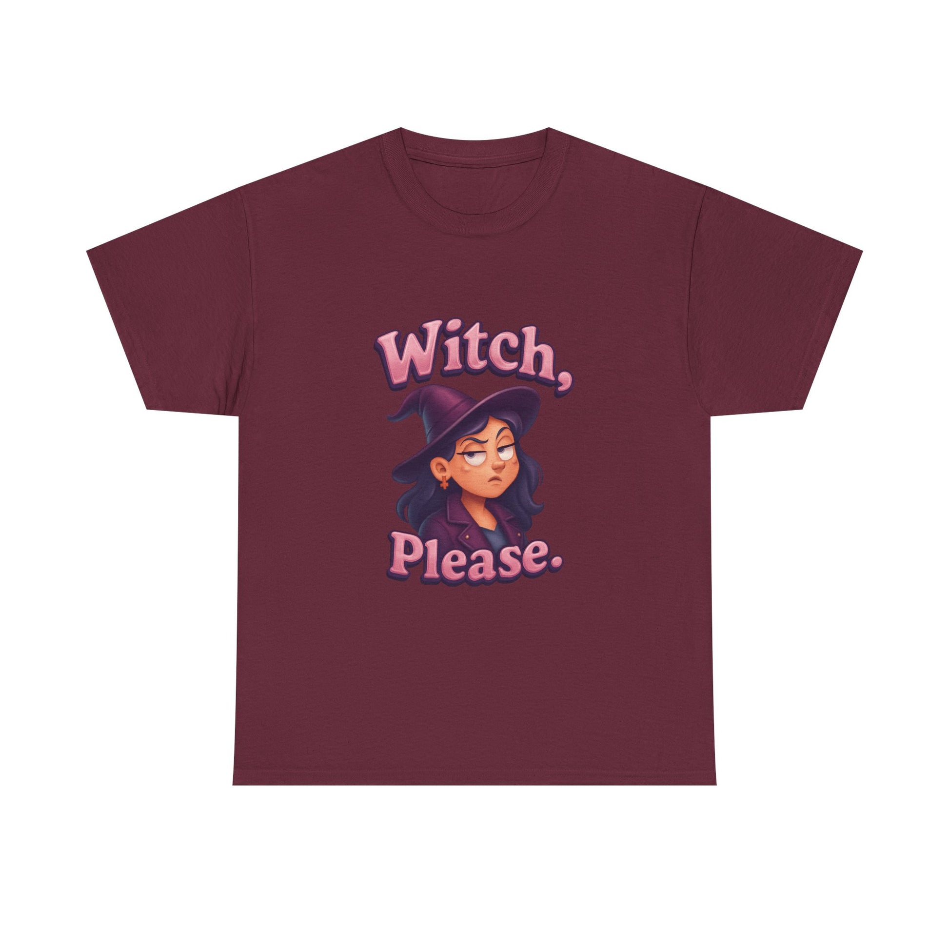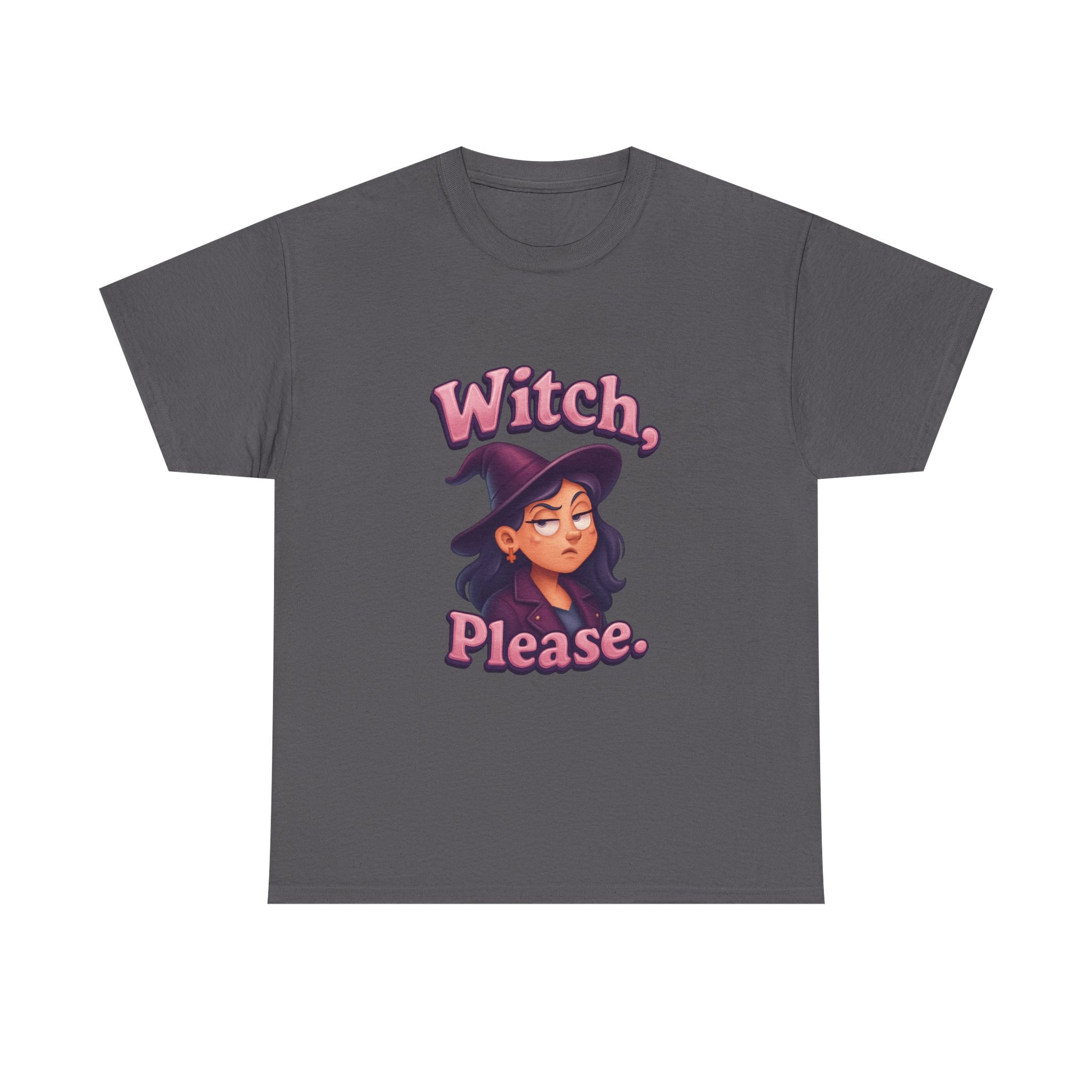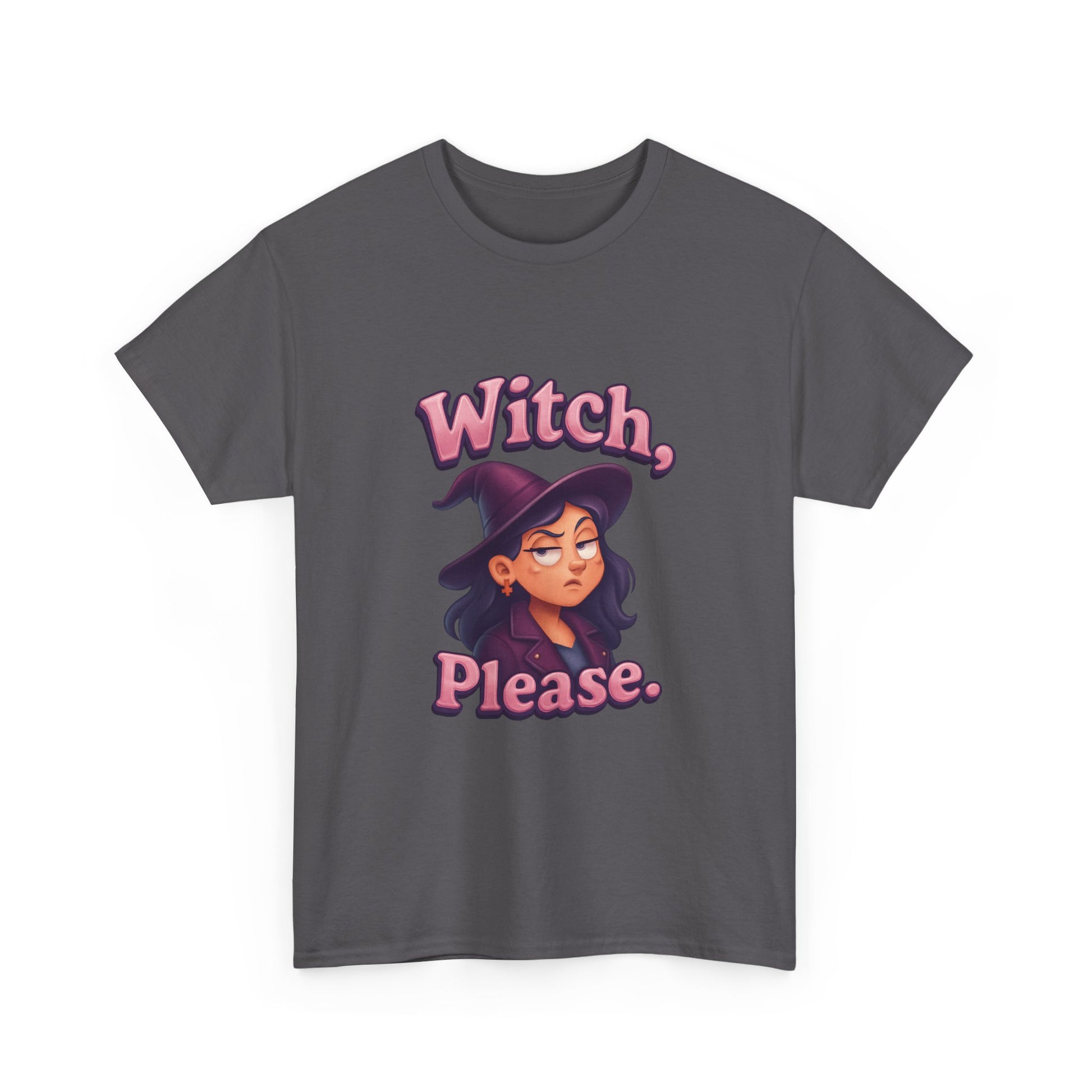Stand out with witchy wit and next-level humor—because sometimes, a little eye roll is the best magic of all!Bring magical attitude to your wardrobe with the “Witch, please.” T-shirt! Featuring a playful design of a female witch rolling her eyes, this tee is perfect for anyone with a sly sense of humor and a love for all things spooky.